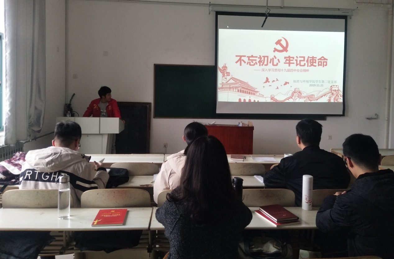 首先,环境本1701班陈艳冬带领大家共同学习《中国共产党第十九届中央委员会第四次全体会议公报》《习近平关于“不忘初心、牢记使命”论述摘编》等内容,加深了大家对党的十九届四中全会精神的理解和《论述摘编》中习近平新时代中国特色社会主义思想的进一步领会。随后,大家在陈艳冬同学的带领下,共同观看了“时代楷模”卢永根先进事迹。中国科学院院士、著名水稻遗传学家卢永根,胸怀祖国,为科研矢志奋斗,把一生奉献给祖国的科学事业,晚年将毕生积蓄捐赠学校,有着70年党龄的他,用实际行动诠释了一名共产党员的初心。观看结束后,各位学生党员纷纷表示要向卢永根同志学习,不忘初心,砥砺前行。