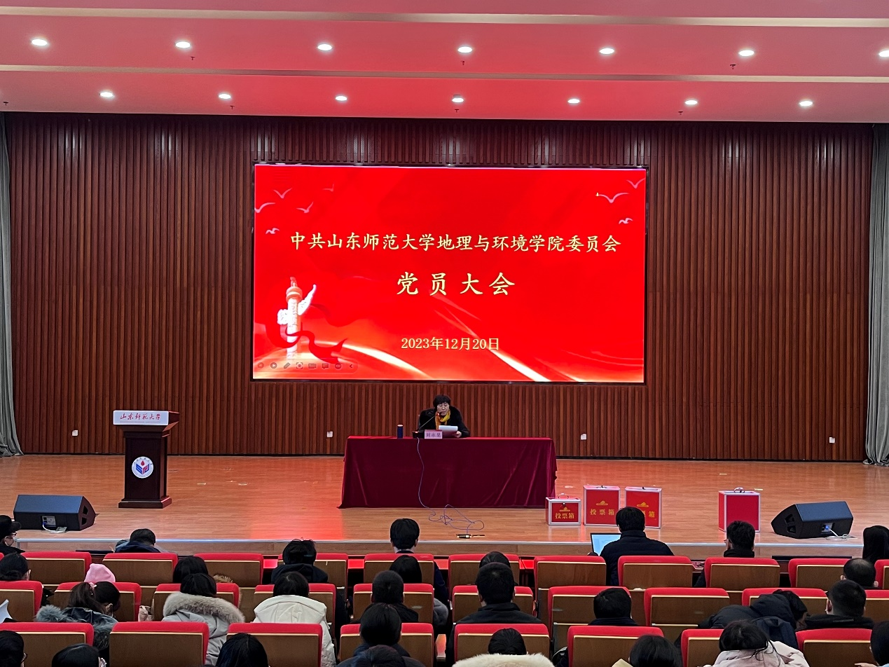12月20日中午,地理与环境学院党委召开全体党员大会增补中共山东师范大学地理与环境学院委员会委员,会议在文昌楼105报告厅召开。地理与环境学院全体师生党员同志出席大会。会议由学院党委书记刘永慧主持。