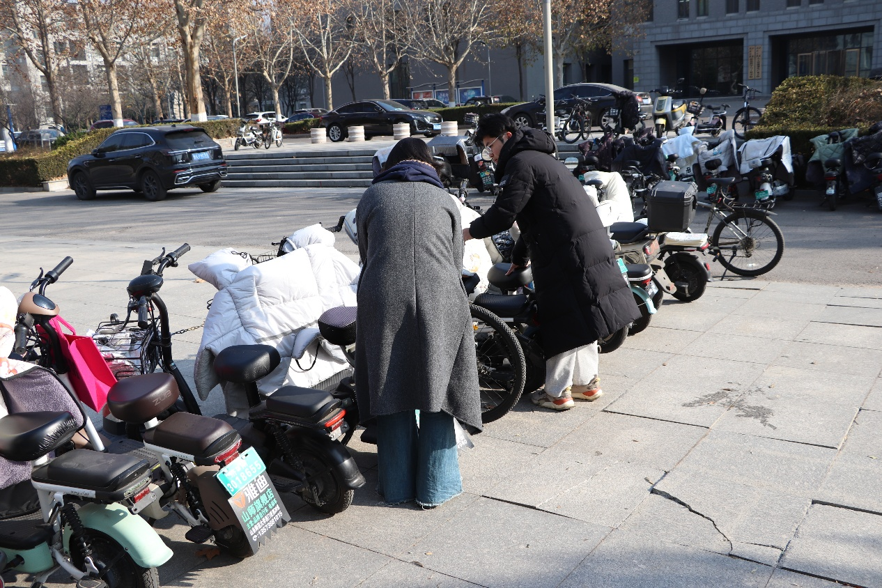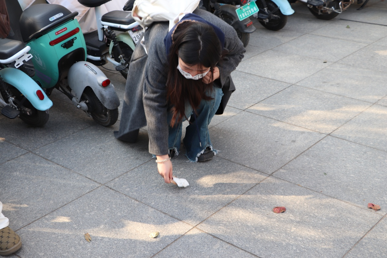 活动现场,支部党员们迅速投入工作,分工明确、干劲十足。针对学院楼下电动车乱停乱放、占用消防及人行通道的问题,党员们逐一扶正倾斜、错位的车辆,并整齐排列至指定区域,确保通道畅通无阻;同时,他们还捡拾了车辆周边的纸屑、落叶、塑料杂物等垃圾。党员们相互配合、默契十足,用双手为校园环境“焕新颜”,忙碌的身影成为校园里一道靓丽的文明风景线。