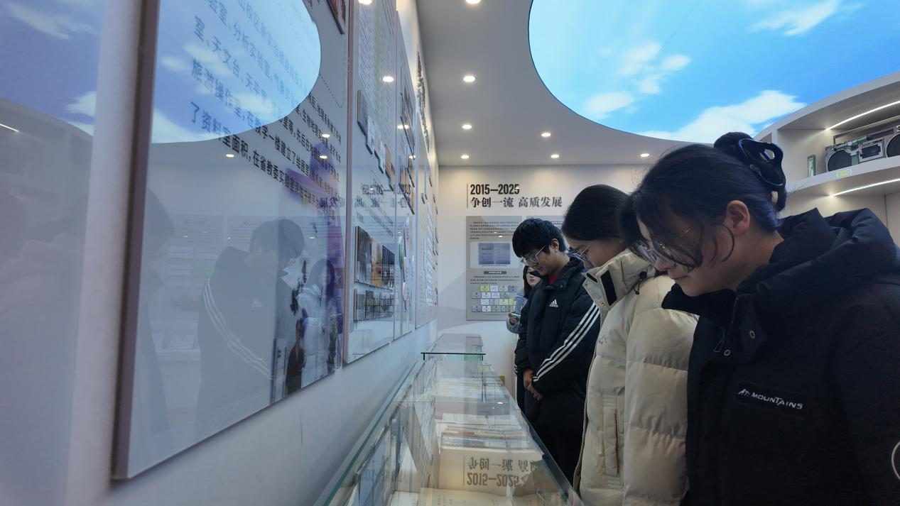 馆内“继往开来发展愿景”板块系统展示了学院在黄河生态保护、地理信息科学等领域的科研攻关方向,使大家深刻领会了“寂静与生长同行、格物与致知相生”的理念。同志们认真观摩历史实物与影像资料,深切感受到历代地理人“把论文写在祖国大地上”的崇高追求。