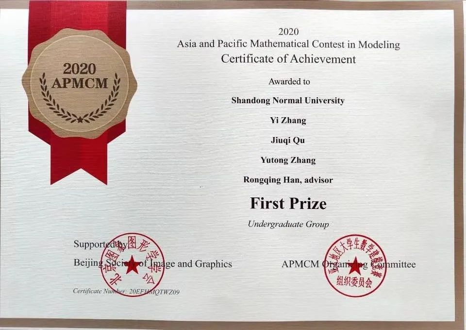 2018级地理科学专业本科生,曾荣获山东师范大学“优秀学生”、“优秀班干部”、“优秀共青团员”、“图书馆优秀志愿者”等荣誉称号;全国大学生数学建模大赛山东省一等奖;亚太地区大学生数学建模大赛(APMCM)一等奖(特等奖入围,B类赛题全国前四名);美国大学生数学建模大赛M奖(一等奖);主持本科生科研基金一项(边界效应影响下泥沙颗粒输移对溅蚀变化的响应);现有一篇SCI一区论文在投;大学生创新创业训练项目校级立项;现以初试第一,总成绩第一的成绩考研至中国科学院大学。