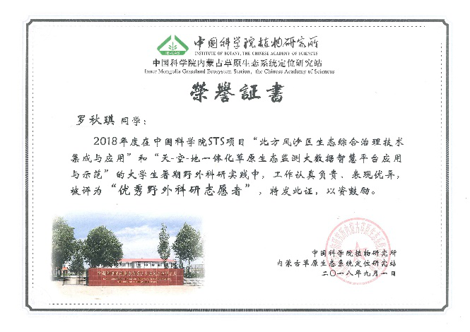 大一一年,她积极参加学校各类活动,不断提高自己的综合素质。在大一暑假期间,她参加了中科院野外考察活动,结交了很多优秀的外校同学,萌生出参与科学研究的想法,开始了自己目标明确的学习生活。