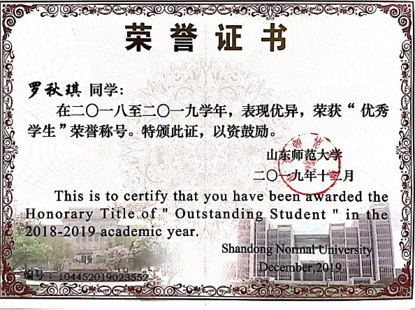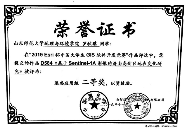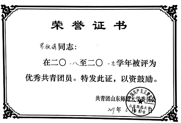 多次获得校“优秀共青团员”、“优秀学生”、“优秀野外科研志愿者”等荣誉称号。多次获得校一等优秀学生奖学金。获Esri杯GIS软件开发竞赛遥感应用组全国二等奖、全国大学生数学建模竞赛省一等奖、亚太数学建模竞赛(APMCM)二等奖、美国数学建模竞赛(MCM/ICM)H奖、大学生创新创业项目训练计划省级立项。以第一作者发表论文《多源数据的交通状态判别及新增车辆拥堵预测》。