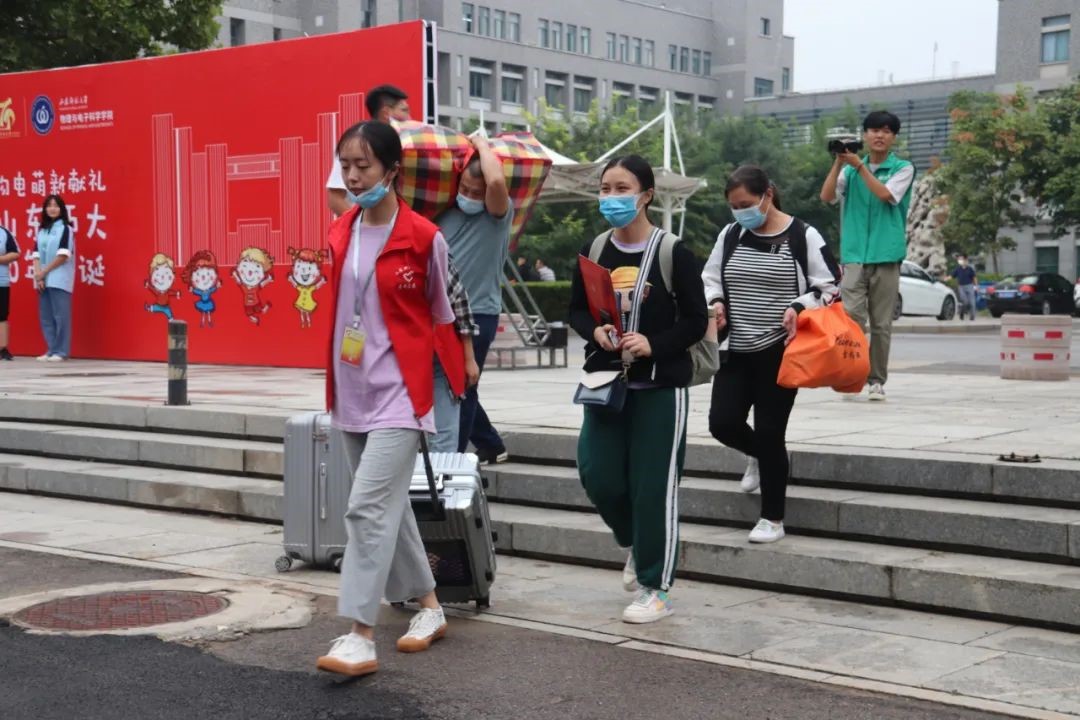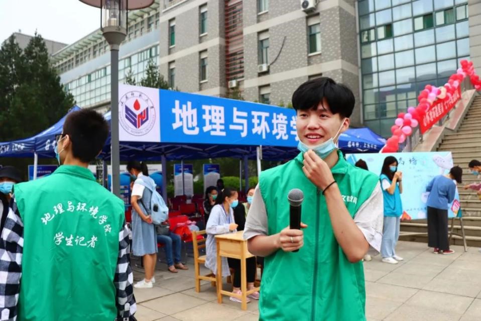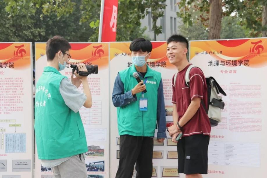 迎新报道进行的同时,宣传部的采访小分队也在行动哦,”你的未来四年有什么打算吗?“,“初入山师,有什么感受吗?”