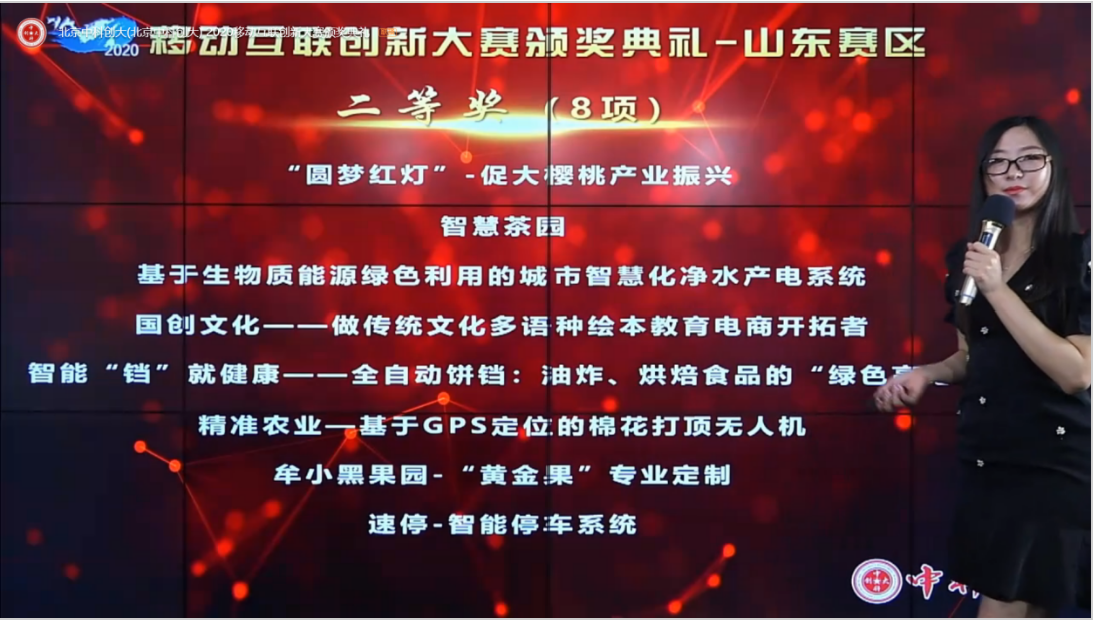 在赛前的备战过程中,指导老师进行细致、有针对性的悉心指导,各参赛队员克服因疫情带来的困难,反复多次修改完善PPT内容,功夫不负有心人,赛前的一切准备都是为在山东赛区决赛中的脱颖而出铺桥搭路。受疫情影响,本次山东赛区决赛通过钉钉会议模式以线上的方式开展,决赛共有33支队伍参与角逐,不同以往的竞赛方式,不变的激烈角逐。比赛以路演的形式开展,在经过PPT展示及答辩环节的比拼过后,由评审老师综合参赛团队项目的创新性、可行性,商业性以及团队合作的情况,进行打分评审。