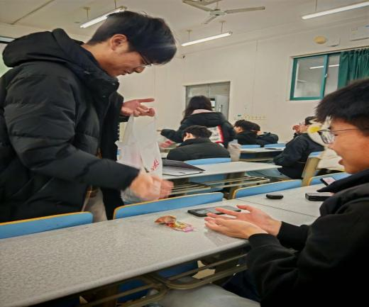 趣味互动与真诚交流成为活动的鲜明底色。茶话会上的零食分享与畅聊、破冰活动中的乡音传递与游戏互动、读书分享会上的思想碰撞与贺卡传情,各类轻松鲜活的形式让同学们在欢声笑语中消融陌生、拉近距离。从“祝福之树”上的真挚期许到“家乡盲盒”里的温情约定,从协作创作中的默契配合到互助鼓励中的彼此支撑,每一个环节都浸润着集体的温暖,每一次互动都筑牢了团结的根基,让新班级快速形成“心往一处想、劲往一处使”的良好氛围。