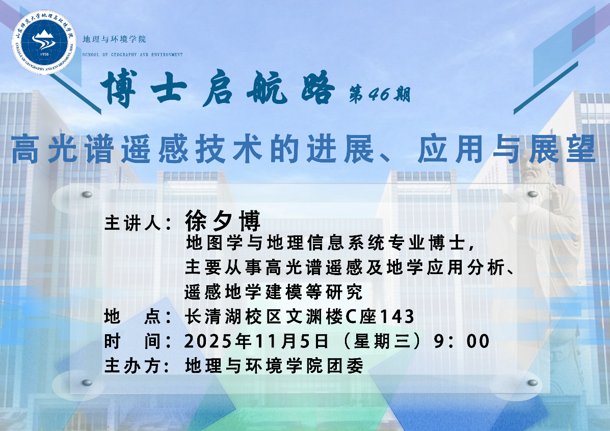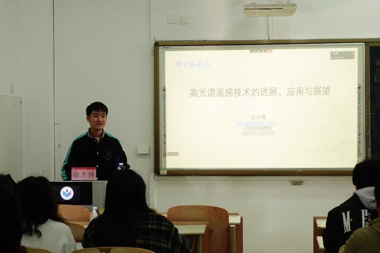 为助力学子科学规划学业发展、精准明晰学术路径,11月5日上午,地理与环境学院团委在长清湖校区文渊楼C座143教室成功举办“博士启航路”专题讲座。本次讲座特邀学院青年教师徐夕博担任主讲人,2024级辅导员范媛媛主持。活动现场汇聚了部分大一、大二年级本科生,同时设置线上分会场,供研究生同步聆听学习。