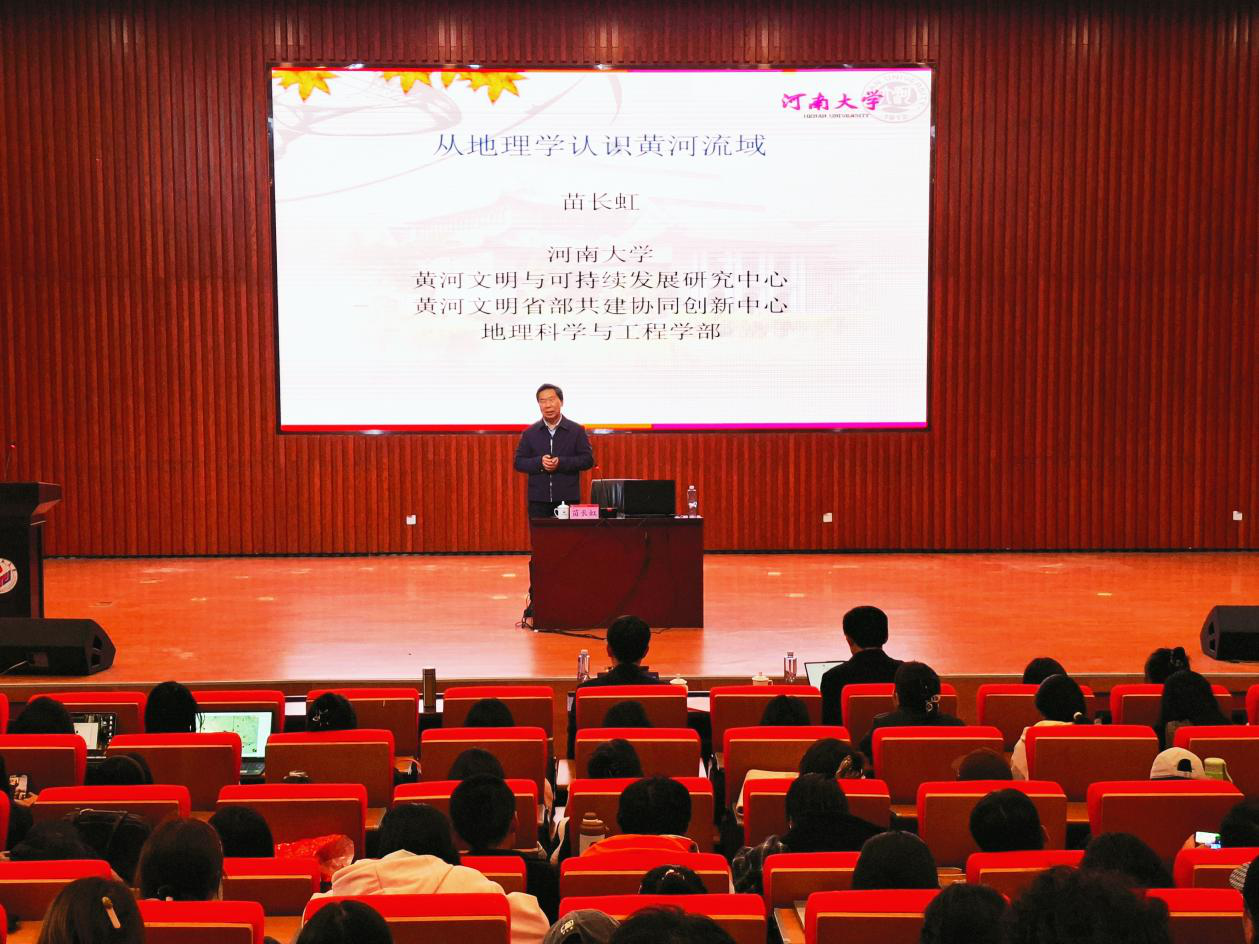 讲座中,苗长虹教授立足于地理学视角,从十个方面系统阐述了对黄河流域的深入认知。他强调,黄河作为中华民族的母亲河,其水患问题历来是民族的心腹之患,必须积极响应国家领导人号召,推动黄河成为造福人民的幸福河,这对实现我国经济社会高质量发展与人民共同富裕具有重大意义。同时,苗长虹教授指出,黄河流域是中华文化的根脉所在,黄河文化作为国家文明的“根”与“魂”,已被纳入新时代重大文化工程,旨在系统保护中华文明核心标识,推动文化遗产的创造性转化与创新性发展,铸牢中华民族共同体意识,进一步促进民族团结事业。