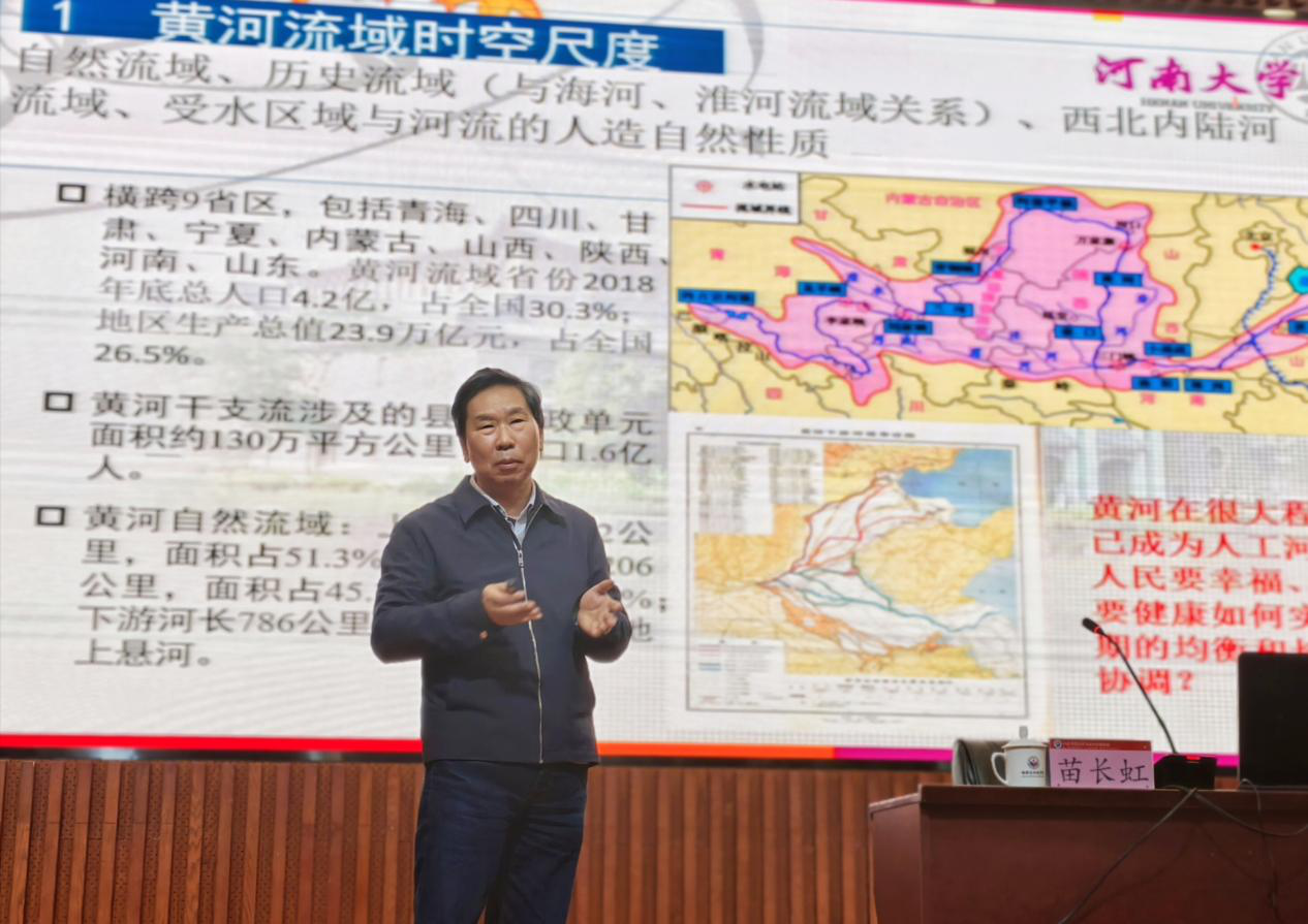 活动伊始,王成新院长主持开场,并对主讲人苗长虹教授进行介绍。他指出,苗长虹教授现任教育部人文社科重点研究基地“黄河文明与可持续发展研究中心”主任,是国家“万人计划”首批哲学社会科学领军人才,曾主持多项国家级项目、二十余项省部级课题,出版《黄河保护与发展报告》等专著十余部,发表学术论文二百余篇,在黄河流域生态保护与高质量发展方面作出了突出贡献。
