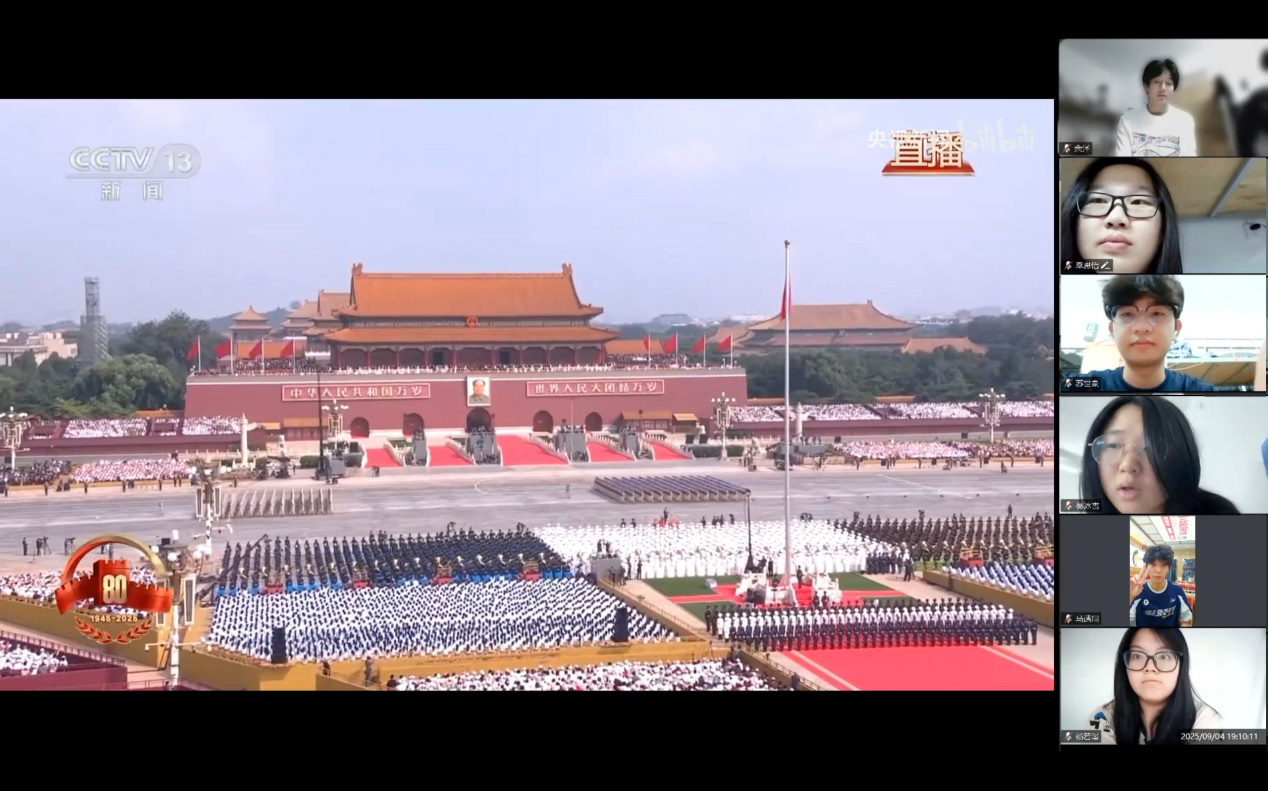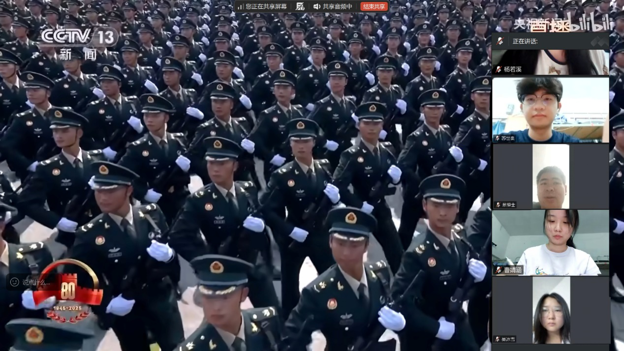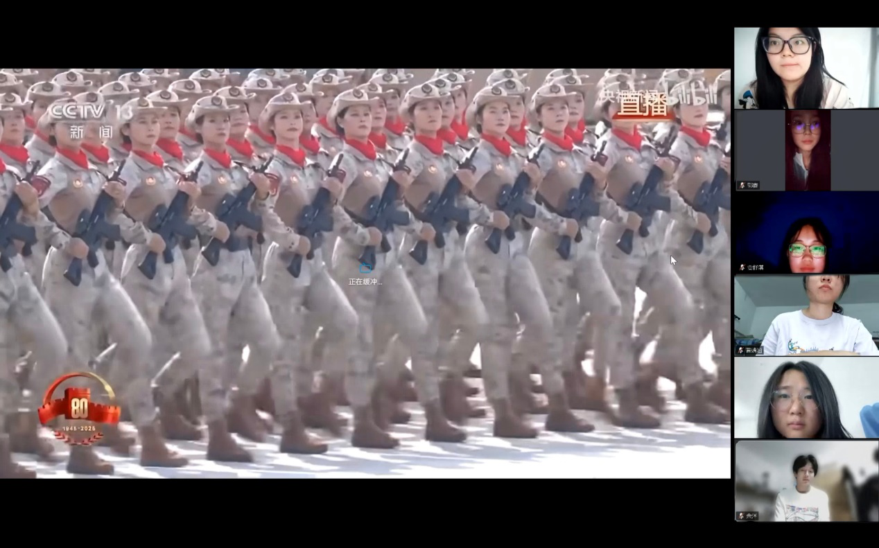 9月4日晚上,为提高青年爱国担当意识,地理与环境学院团委“地心力”团校依托腾讯会议线上平台举办“悟阅兵担当,担时代使命做有为青年”观看阅兵仪式活动。为纪念中国人民抗日战争暨世界反法西斯战争胜利80周年,我国在北京天安门广场隆重举行了阅兵仪式。这一纪念日不仅是对无数先烈牺牲奉献的深切缅怀,更是对历史真相的坚定守护、对和平正义的庄严捍卫,为传承爱国主义精神、激励后人奋勇前行提供了重要精神指引,具有不可替代的历史价值与现实意义。