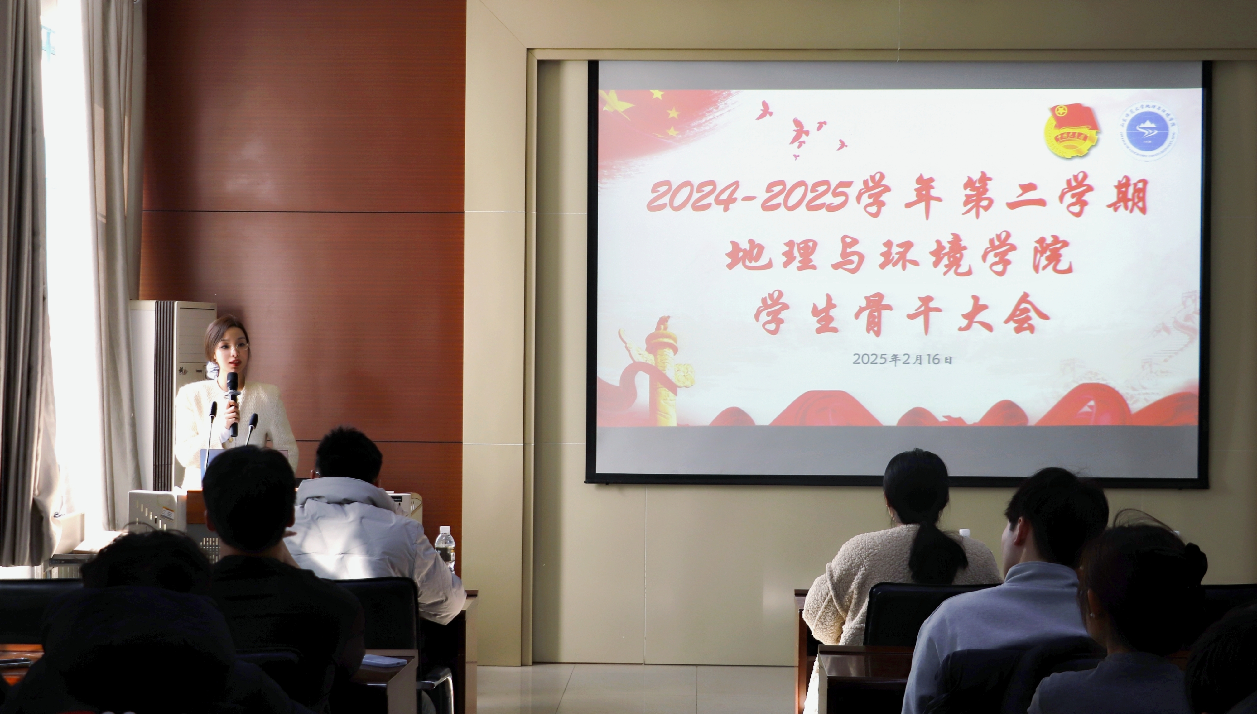 2月6日下午,地理与环境学院于长清湖校区文澜楼A座G210举行2025年新学期学生骨干动员大会。全体辅导员出席会议,学院全体学生骨干参加会议,会议由学院团委书记、学工办主任陶艺主持。