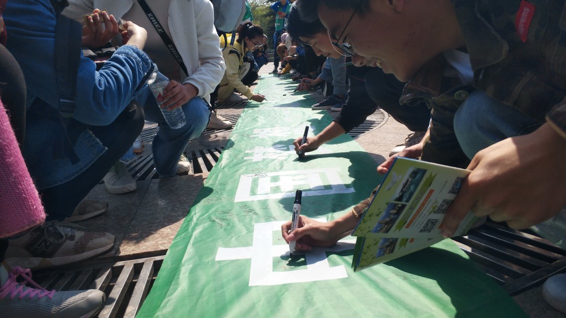 当天上午8点左右,山东师范大学近300名学生从长清校区出发,沿大学路一直向西,骑行至大学路与经十西路交叉口处左拐,再沿经十西路一直向南,10点左右,骑行队伍到达目的地—清悦园广场。同学们向广场周围市民发放环保手册并宣传环保观念,与市民们就家庭污水排放、垃圾分类等问题进行了深入的交流,而且通过提问世界水日等问题进一步普及环保知识。参与活动的市民们很是赞同同学们这种积极践行环保理念的行为,并纷纷表示会做出行动,让环保观念深入生活,并将印有环保标语的纪念品赠送给市民们。宣传结束后,同学们积极在“凝聚环保力量,共筑中国梦想——纪念五四青年节100周年”横幅上签字留念,以此表明将环保进行到底的决心。签字后,地理与环境学院团委老师陈光带领同学们进行环保宣誓,呼吁大家“抵制污染、保护环境”,为环保建设贡献自己的一份力量。