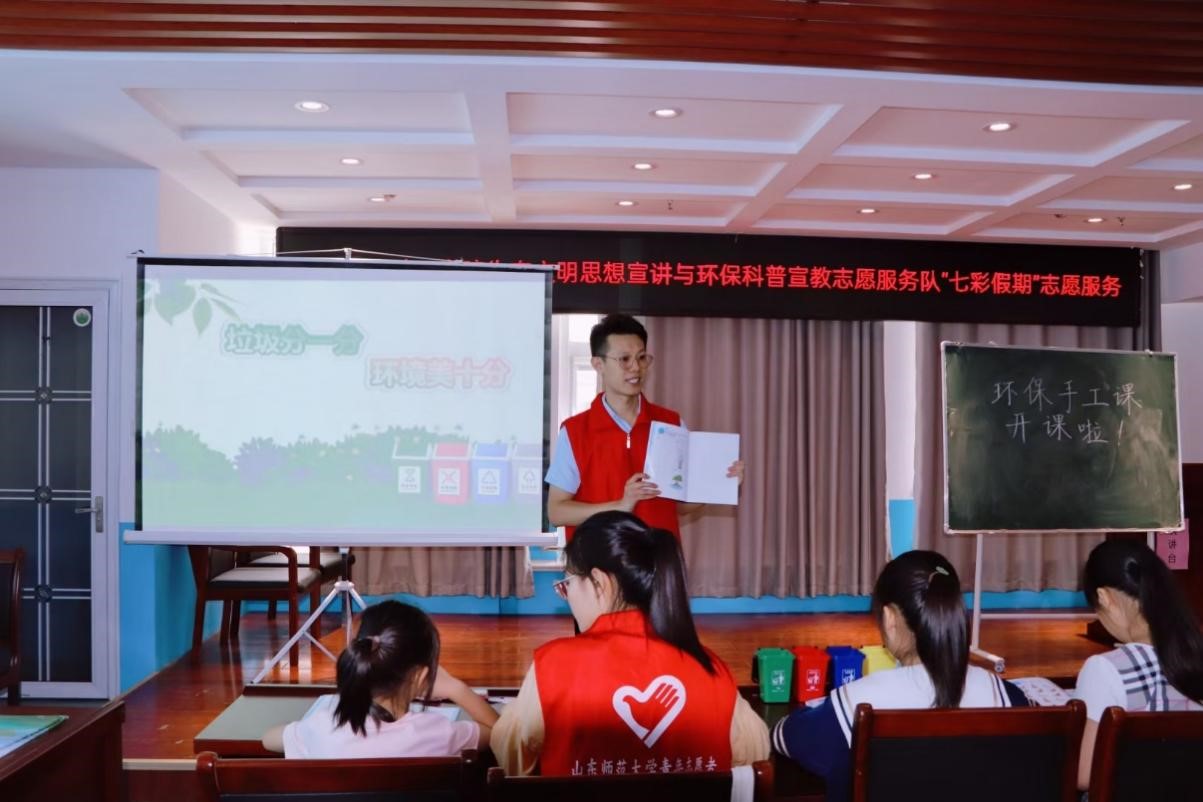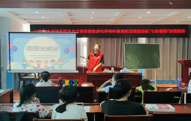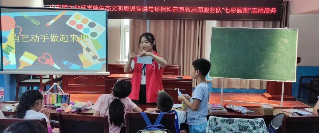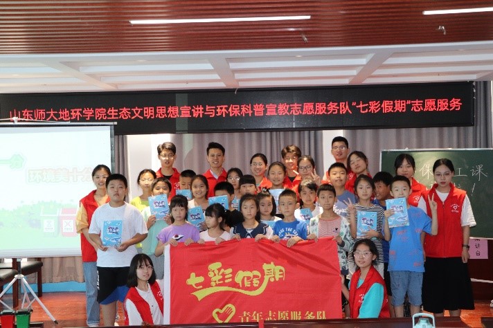 2022年7月11日至22日,山东师范大学地理与环境学院“生态文明思想宣讲和环保科普宣教志愿服务队”以暑期托管志愿服务为主要形式载体,于山东省济南市长清区常春藤北区开展了为期12天的“七彩假期”社会实践活动。本次社会实践活动由辅导员欧阳德龙带队指导。