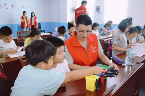为积极贯彻落实习近平生态文明思想,服务队组织开展环保宣讲系列活动,引领广大青少年树立环境保护意识。活动期间,服务队成员为学生们科普了垃圾分类知识,详细讲解生活垃圾分类投放指引,帮助社区青少年掌握正确的垃圾分类方式。同时,实践队员们给社区儿童发放了中国环境科学学会印发的《保护蓝色海洋》生态教育书籍,为青少年扣好保护海洋生态的“第一粒扣子”奠定基础。