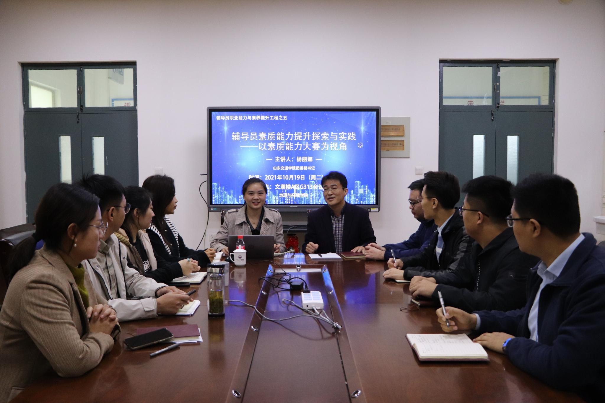 为进一步提高学院辅导员队伍的政治理论素养和职业化、专业化水平,促进辅导员队伍能力提升与素质培养,深化学工内涵,10月19日,学院于文澜楼G313会议室开展“辅导员理论素养提升工程”第五期培训会。本次培训会特邀山东省辅导员年度人物、2020年山东省辅导员素质能力大赛特等奖获得者、山东交通学院团委副书记杨丽娜作报告交流,交流会由党委副书记李山峰主持。
