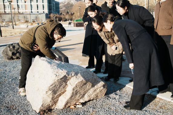 宣讲结束后,双方共同开展馆校交流活动。宣讲团一行在学院师生陪同下,参观了山东师范大学校史馆与地理园,就红色资源育人、实践教学融合等话题进行了深入交流。
