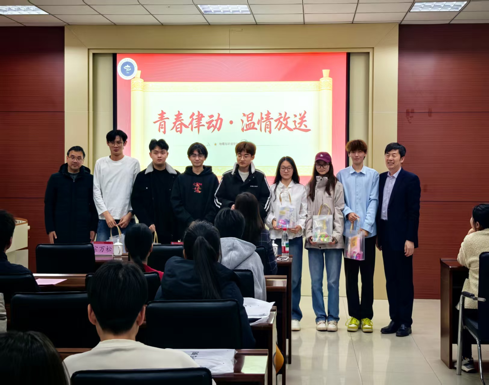 会议最后,学院领导为各年级学生代表发放运动用品套装,将学院的关怀与温情切实传递到每一位同学心中。