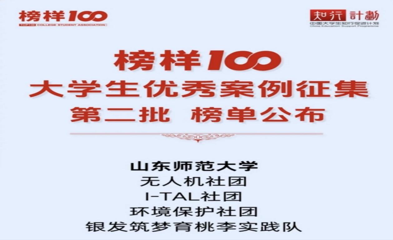 最终,凭借丰富的申报材料、突出的社团建设成果和鲜明的特色优势,我院在本次评选中收获亮眼成绩:无人机社团,I-TAL社团,环境保护社团、“银发筑梦育桃李”退休教师暑期访谈实践队成功入选“榜样100”榜单,凭借优质案例获得组委会认可。此次荣誉的取得,是对学院社团建设与学子实践能力的双重肯定。
