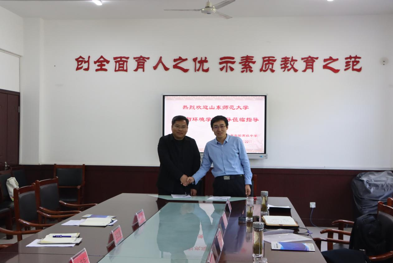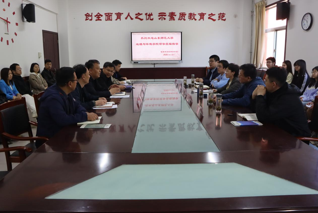 为深入了解地理科学专业本科生教育实习情况,深化与实习基地学校的合作交流,4.22日上午,山东师范大学地理与环境学院党委书记刘永慧,党委副书记、纪委书记李龙,副院长程钰,地理科学系主任李连刚,地理科学系副主任、实习生指导教师朱承熙一行赴临清市实验高级中学,调研慰问教育实习学生,并与该校签署合作共建协议书。临清实验高中党委书记王桂强,党委副书记、校长毛磊,副校长孔庆生及相关部门干部、年级主任、指导教师共同参加活动。