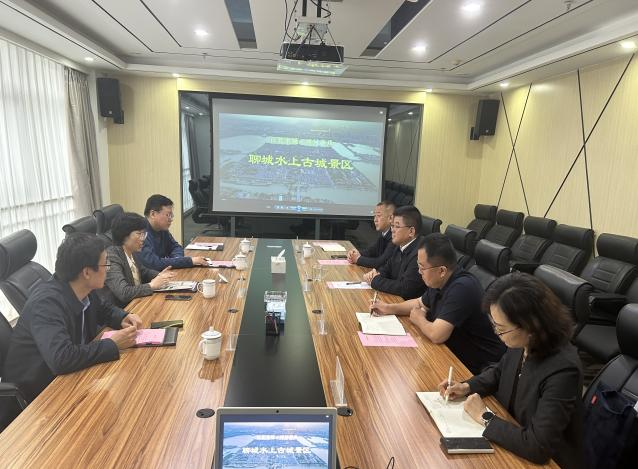随后,学院一行前往聊城市文旅集团开展走访调研,集团党委书记、董事长孙建德和副总经理王跃等相关领导陪同调研并主持座谈会。双方共同介绍了各自情况,结合文旅产业规划、智慧旅游建设与生态环境评估等方向,深入探讨了人才需求、科研协同及成果转化路径。双方一致认为,在文旅策划、环境监测、地理信息分析等领域合作空间广阔,将加快推动在实习实践、人员互聘和技术服务等方面建立常态化合作机制。