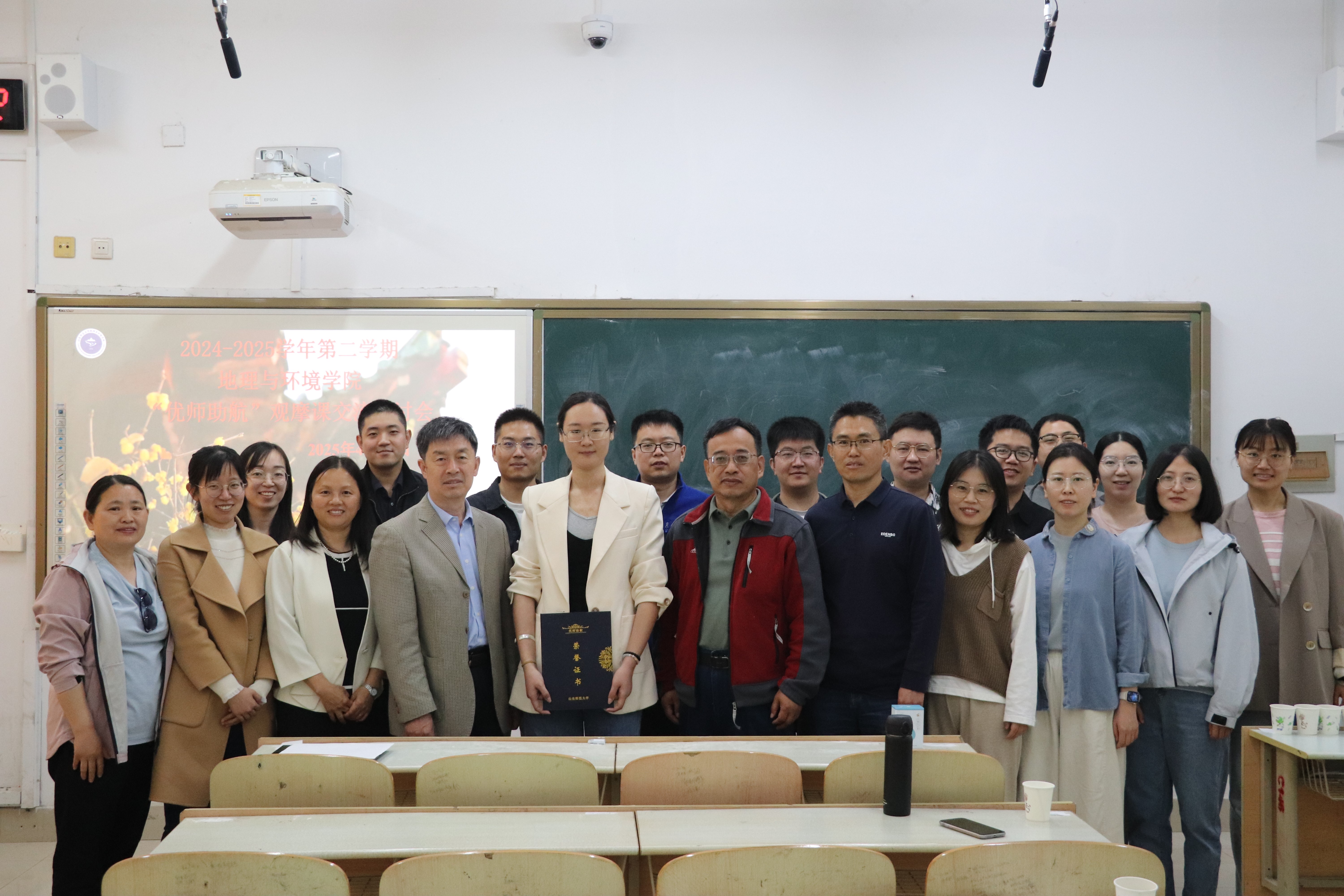 课堂展示结束后,学院教师们在文渊楼C105开展了观摩课交流研讨会。王成新院长强调,要全面贯彻党的教育方针,持续推进课程思政与专业教育的深度融合,在知识传授中厚植生态文明价值理念。刘恩峰教授指出,青年教师要坚持教学科研双轮驱动,以科研前沿撬动课堂革命,以教学实践反哺科研创新。最后,青年教师们结合自身教学实践,就课堂互动设计、教学效果评价等展开热烈讨论,共享教学经验。学院督导组成员陈培安教授等对课堂教学提出中肯建议。自然地理青年教师代表徐晋玲老师进行了课堂氛围活跃、讲授环节灵活多样以及启发了学生学习思维的相关发言。