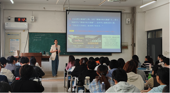 本次观摩课由刘琳老师主讲,授课内容为《土壤腐殖质》。课程聚焦土壤有机质的概念、分类、胶体特性、分子结构与品质评估标准,深入讲授了土壤腐殖质与土壤碳循环、重金属钝化和肥力缓冲等生态功能的关联,同时,结合“耕地中的大熊猫”东北黑土退化等案例,引发了学生关于“土壤腐殖质与土壤供肥保肥能力之间的关系”的相关思考。刘琳老师采用启发式教学,借助多媒体演示与课堂互动,引导学生构建知识框架,培养了学生的学科思维。课堂教学环节完整流畅,包含课堂导入、案例分析、讲解、提问、小组讨论和归纳总结等环节,课堂内容丰富多彩。小组讨论环节,每个学生都积极参与讨论,互相学习,赋予了学生探索的空间,体现了老师倾囊相授的初心,其创新的教学设计和扎实的专业功底,为青年教师提供了生动的教学范式。