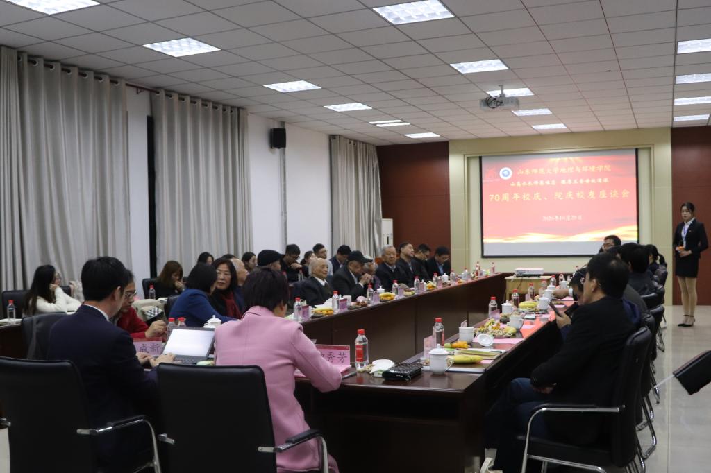 通过播放地环学院的宣传片,与会师生共同回顾往昔,感受学院70年间的发展历程。陈龙飞、翟忠义作为山师历史变迁的见证人,回忆并讲述了学校与地理系的发展历程,表达了对历史底蕴深厚的地环学院深沉的情感。郭旭升将自己在本科、硕士阶段的师大求学经历比喻成自身的重要财富,他表示山师地学人求真务实、开拓创新的科研精神,犹如“灯塔”一般指引着他毕业后的工作和生活,自己所取得的成就离不开母校和学院教师的辛勤栽培与教导;王庆从师生关系角度,阐述了学院老一辈教师对于后辈的辛勤栽培与指导令他至今难忘;赵勇就基础教育这一话题,与各位校友交流基础教育在新时代中国发展中的重要意义,并对母校在基础教育领域的育人模式建言献策……在校庆的喜庆氛围中,校友们畅所欲言,表达了浓浓的师生情谊,共同勾勒新时期学院发展的宏伟蓝图。王成新表示,感谢各位校友百忙之中能够借助校庆的契机,团聚于学院,追忆师生情谊,共谋学院发展,各位取得的优异成绩是学院的骄傲,希望各位校友能够继续奋发有为,为“地环精神”代言,为“山师精神”代言,同时积极关心学院发展,多为学院的建设提供宝贵建议。