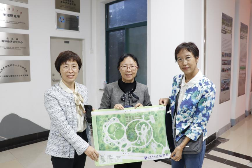 在学院,刘永慧向大家介绍了学院目前的基本情况和在教学、科研、人才培养等方面取得的突出成绩,带领校友们参观了优秀毕业生展墙,并代表学院向校友们赠送了精心准备的地理园文创产品。