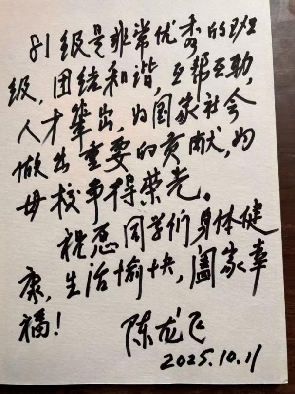 山师原校长陈龙飞先生给1981级校友留言