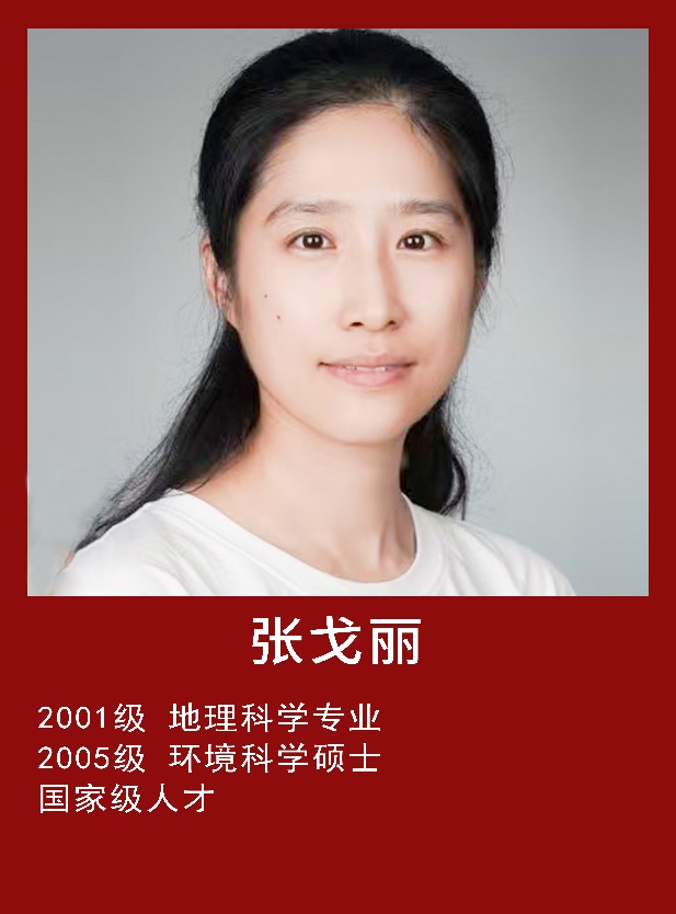 张戈丽,2001级地理科学专业,2005级环境科学硕士,国家级人才,现任中国农业大学土地科学与技术学院教授,博士生导师。主要研究方向是农业与土地资源遥感、土地生态评价、土地退化检测。2013-2015年主持国家自然科学青年项目“耦合遥感和地面观测的青藏高原草地物候变化的量测与模拟研究”,2017年获得青藏高原高寒草地对全球变化的响应机理、格局及其环境效应,西藏自治区科学技术一等奖,2019年获中国农业大学首批“人才培育发展支持计划”青年新星A类。