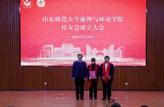 学校合作发展处处长赵湘轶代表山东师范大学校友总会宣读了校友总会关于成立地理与环境学院校友分会的函件。会议审议并表决通过了《山东师范大学地理与环境学院校友会章程》,选举产生学院校友会名誉会长、会长、副会长、秘书长、副秘书长和理事。张建校长与赵湘轶分别向名誉会长和理事代表颁发了聘书。