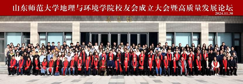 11月30日,地理与环境学院校友会成立大会暨高质量发展论坛在长清湖校区隆重举行。学院1952级校友、我校原校长陈龙飞先生,1981级校友、中国工程院院士、中国石油化工股份有限公司总地质师郭旭升先生,山东师大校长张建教授等出席活动并致辞。300余名各届校友代表参加会议。大会由地理与环境学院党委书记刘永慧主持。
